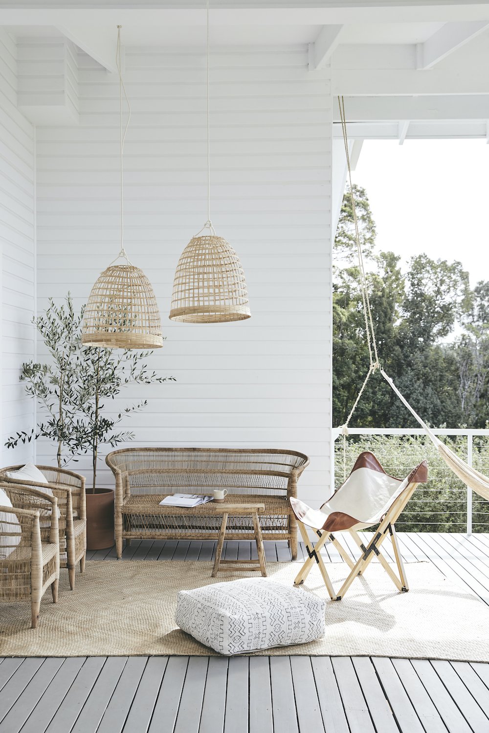 Styling is all about adding interest with organic and fluid forms. Hammocks and hanging chairs are ideal for this as they bring a organic sculptural shape while also creating another place to lounge or sit. Try and hang it in a beautiful way — details matter. Here, I have used a thick natural rope that is in keeping with the rest of the scheme.